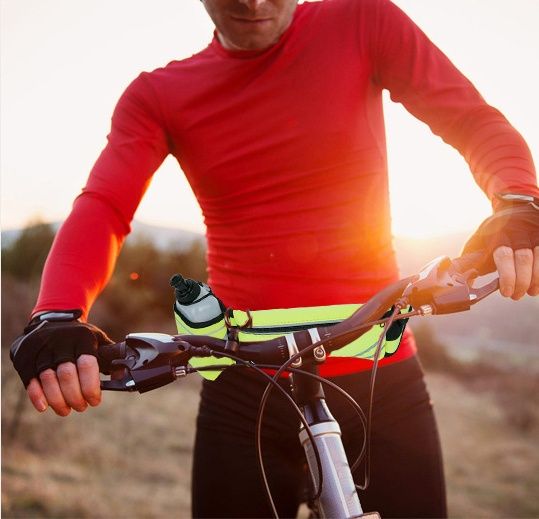 ランニング時の水分補給と荷物収納を両立させた多機能ウエストポーチです。